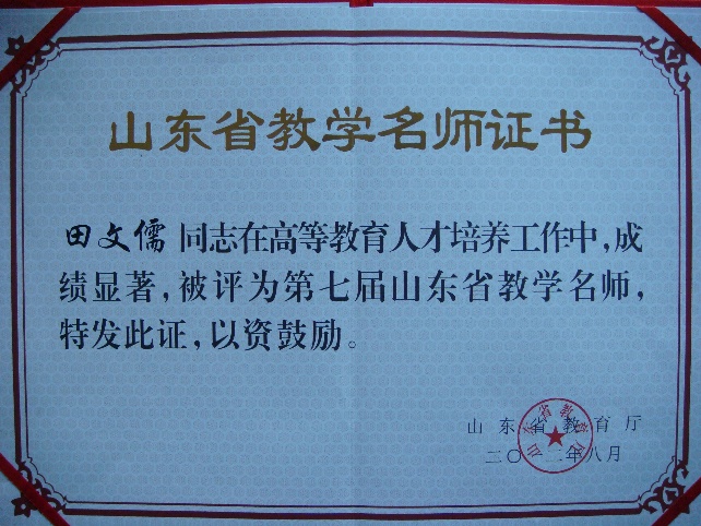 6. 2012年获得山东省“教学名师”称号;