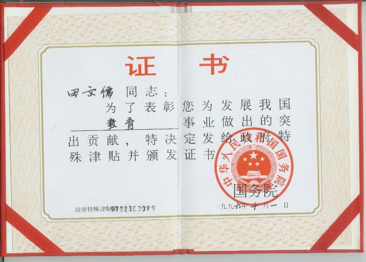 3. 1996年获国务院政府特殊津贴;