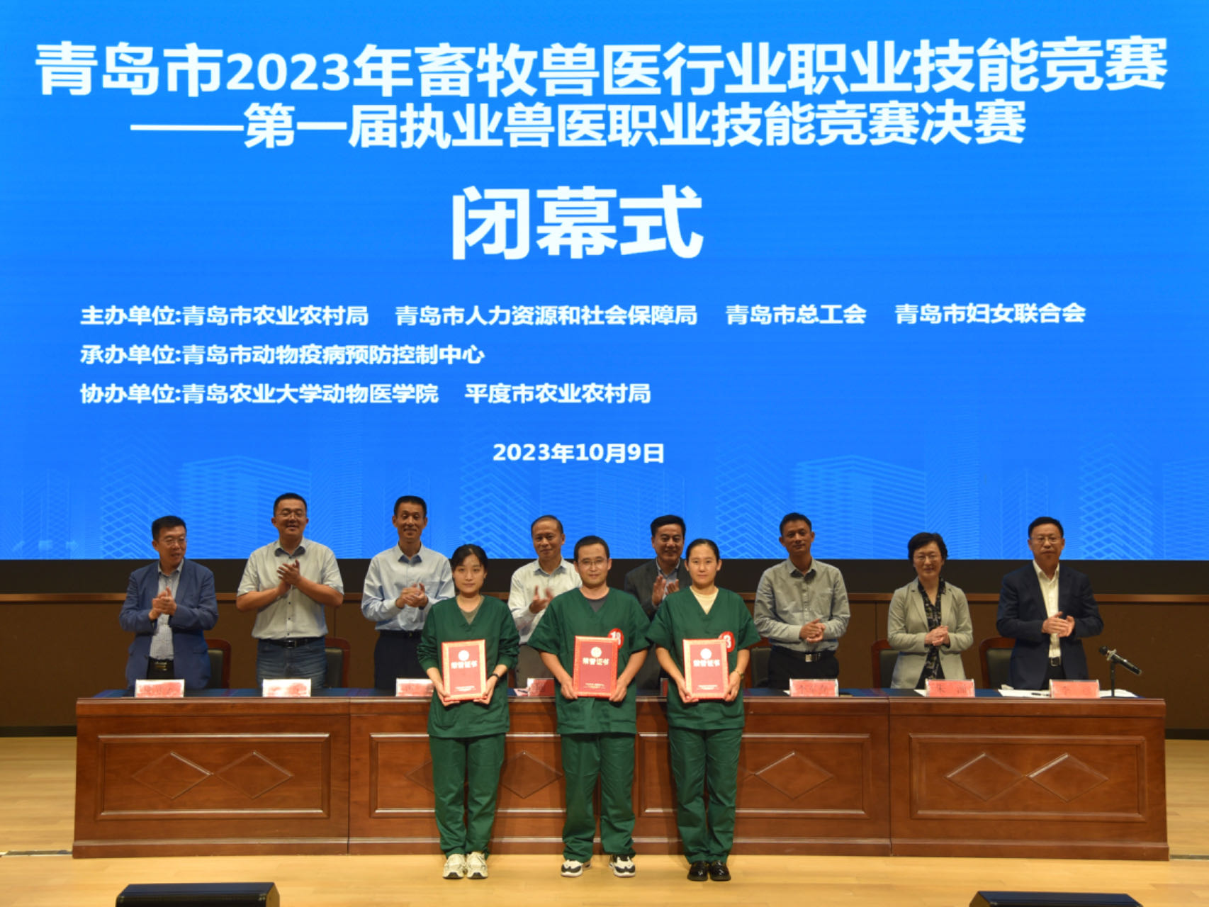 10月8日—9日,2023年山东省“技能兴鲁”职业技能大赛——第一届执业兽医职业技能竞赛在hga030皇冠手机登录地址平度校区成功举办。经过一天半的激烈比拼,动物医院代表队陈守勇(2018级兽医硕士)、张新兵(2023级兽医硕士)、刘金蓉(2019级兽医硕士)分别荣获一等奖、二等奖、三等奖,hga030皇冠手机登录地址荣获突出贡献奖。