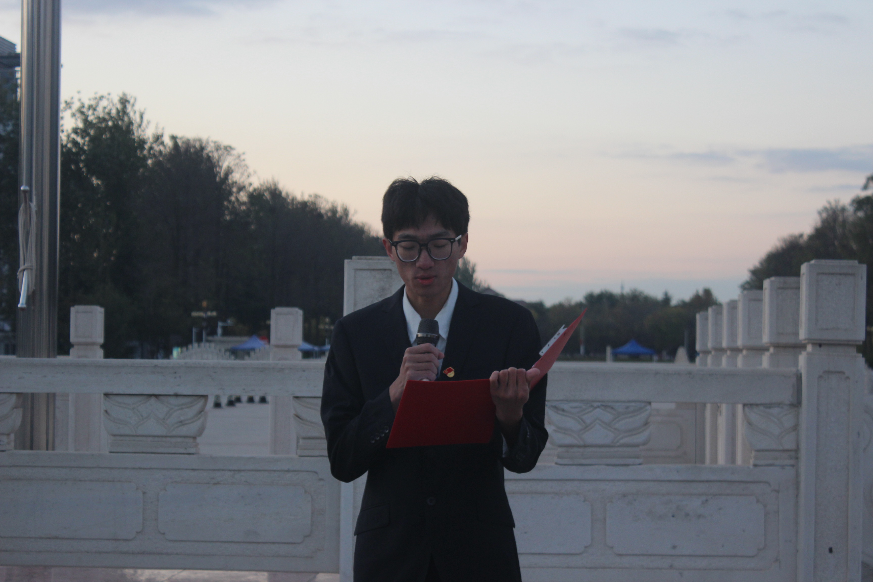 学生代表李兆杰进行“学思践悟新思想,绰厉奋进新征程”国旗下演讲。他表示作为新时代的大学生,要以党的二十大精神为指引,时刻牢记自己的使命,不断提升自身的综合素质,斗志昂扬,勇担青春使命,心怀“国之大者”,立大志、明大德、成大才、担大任,把个人的发展同国家和民族的前途命运紧紧联系在一起,努力成为堪当民族复兴重任的时代新人。