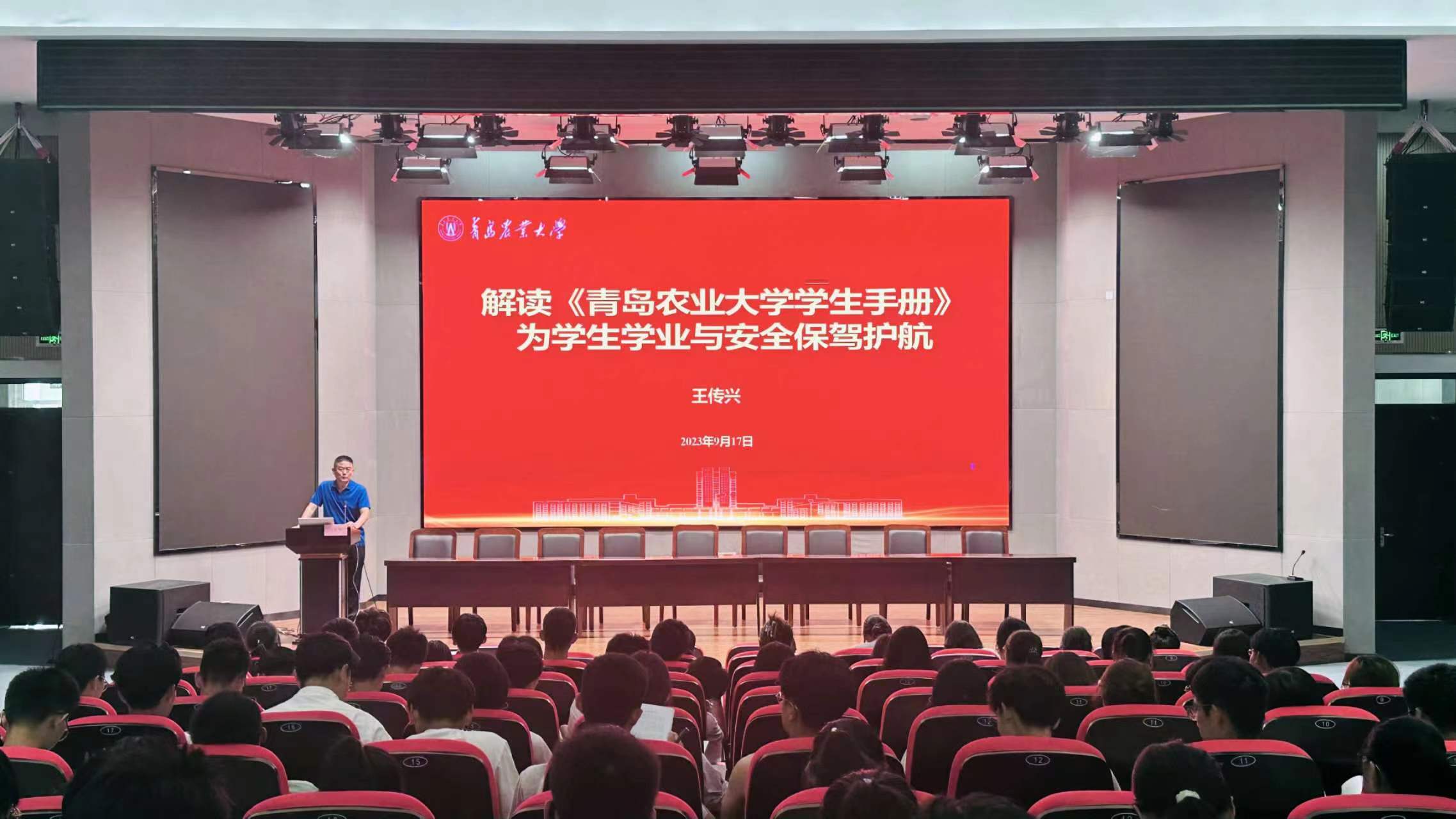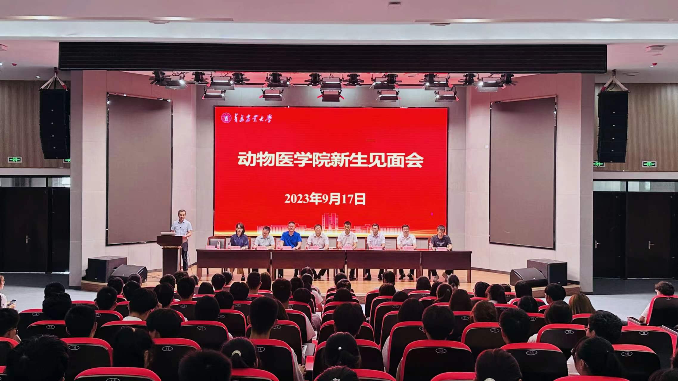 9月17日,hga030皇冠手机登录地址在平度校区博学楼报告厅举行2023级新生见面会,并开展系列入学教育工作帮助新生加深专业认知、了解学业要求,引领新生传承青农精神,做合格青农人。学院党委书记丁国庆、院长单虎及其他领导班子成员、各专业负责人、辅导员、新生班主任等参加会议,大会在奏唱中华人民共和国国歌中拉开帷幕,团委书记和法华主持会议。