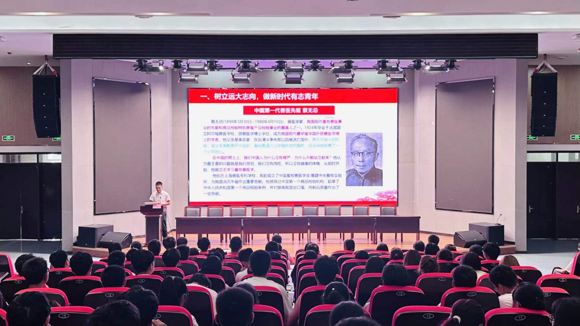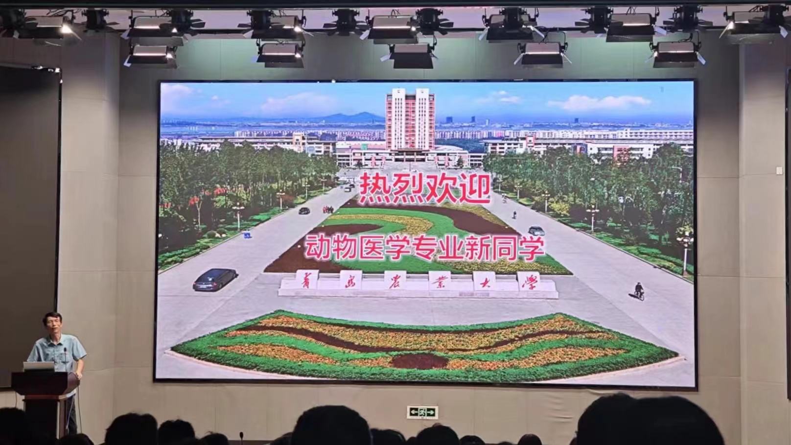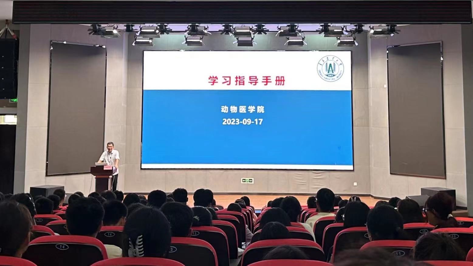 丁国庆以《厚植爱国情怀 奋进正当时 做堪当大任的时代青年》为题为新生们讲授了“开学第一课”。丁国庆带领同学们一起重温习近平总书记的青春寄语,结合中国第一代兽医先驱蔡无忌、兽医生物药品制造创始人之一程绍迥、中国兽医学家邝荣禄、中国动物病毒学研究奠基者殷震等先辈的光荣事迹,从树立远大志向,做新时代有志青年;练就过硬本领,做新时代有为青年;胸怀“国之大者”做新时代担当青年三个层次,勉励新生以远大志向指引人生方向,把个人的理想追求融入党和国家事业之中, 做社会主义核心价值观的坚定信仰者、积极传播者、模范践行者,向英雄学习、向前辈学习、向榜样学习,争做堪当民族复兴重任的时代新人,在实现中华民族伟大复兴的时代洪流中踔厉奋发、勇毅前进。