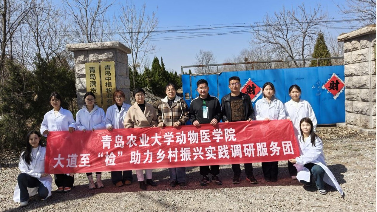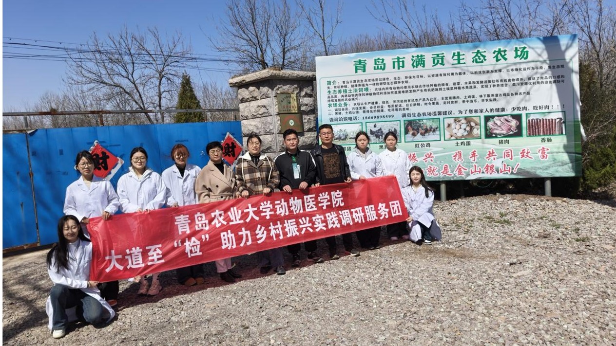 3月19日,hga030皇冠手机登录地址大道至“检”助力乡村振兴实践调研服务团在指导教师张传美和马清霞老师的带领下,深入青岛市即墨区龙泉动物卫生与产品质量监督站及青岛市满贡生态农场(青岛中根牧业有限公司),开展了一系列富有成效的实践调研活动。此次调研旨在深入了解当前动物疫病防控以及动物源性食品安全工作的实际状况,挖掘其存在的问题和挑战,为推动动物疫病防控、检疫检验及食品安全工作的持续改进和优化贡献青春的智慧和力量。