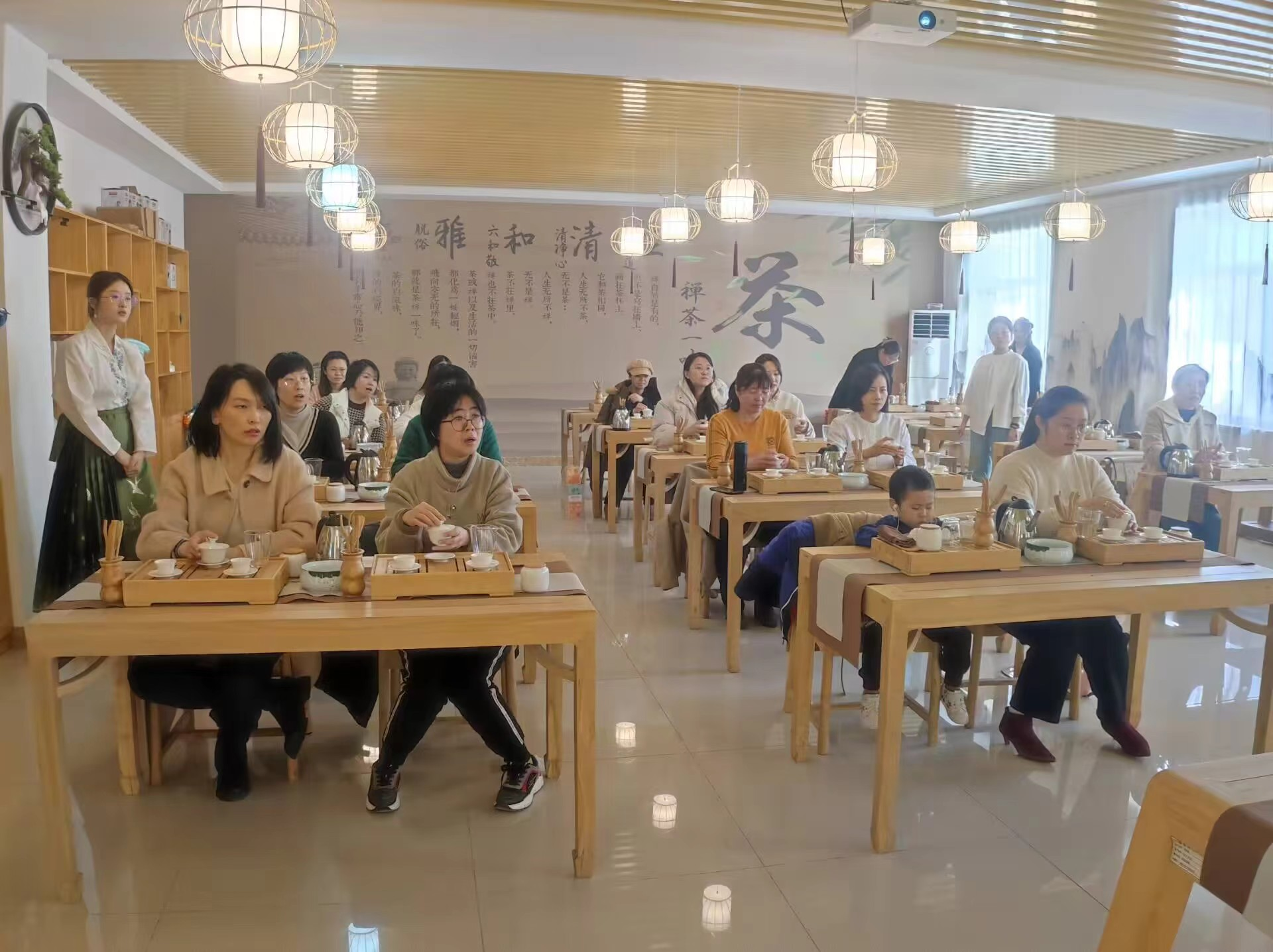 本次活动邀请到专职茶艺师进行授课,围绕茶叶起源与发展、茶与健康、不同类别茶叶的冲泡等内容,就泡茶基本流程及技巧等茶道知识进行了生动讲解。活动现场环境优雅,布置精巧,现场摆放有茶具、点心水果。在茶艺老师指导下,在场女教职工们纷纷动手学习冲泡技巧。