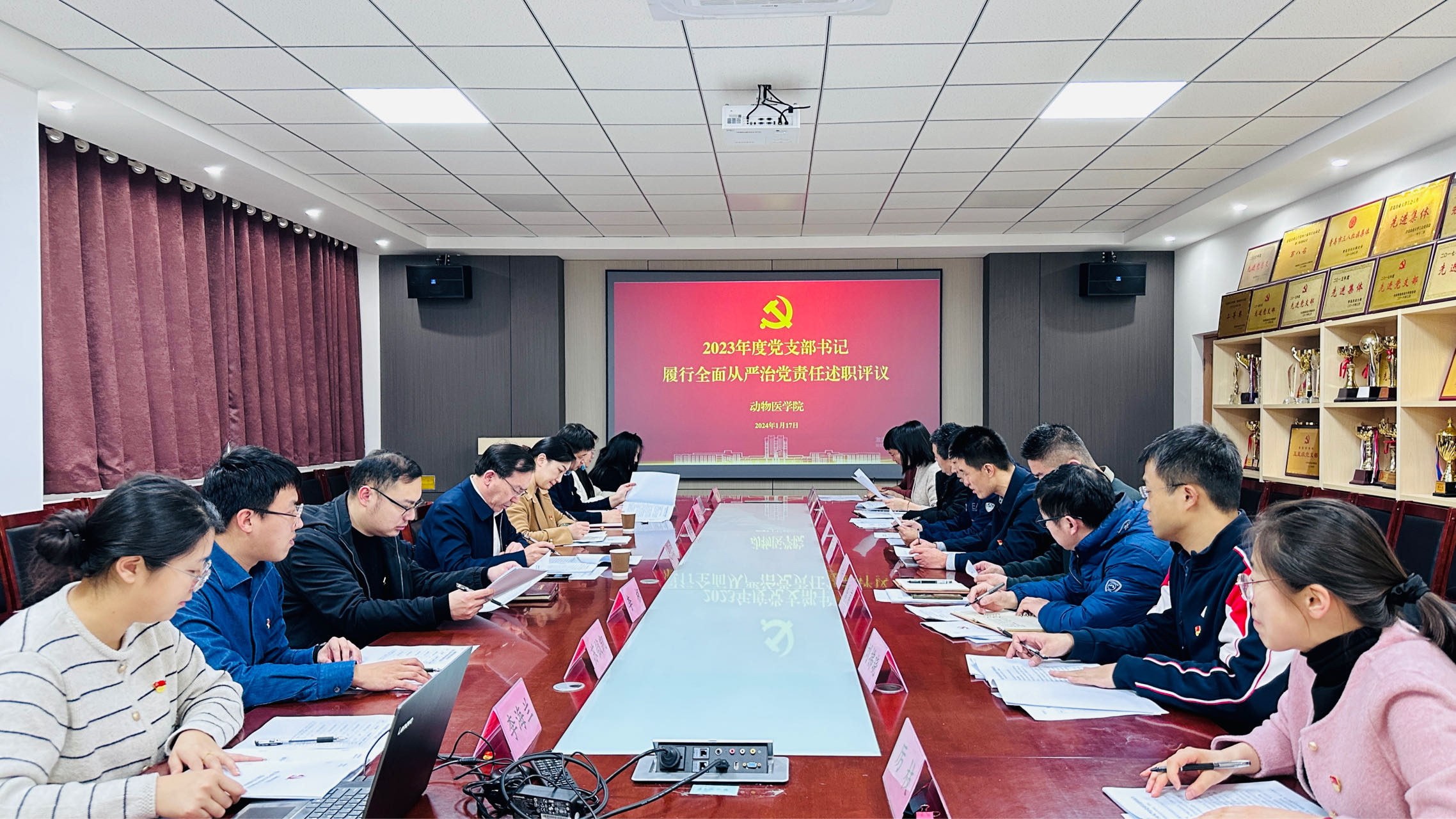 1月17日,hga030皇冠手机登录地址召开2023年度党支部书记履行从严治党责任和抓基层党建工作述职评议会议,校党委委员、副校长赵金山,统战部副部长孙贝贝出席会议。学院党委班子成员、各党支部书记、支委成员参加会议,会议由学院党委书记丁国庆主持。