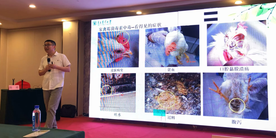 陈甫教授培训专题是霉菌毒素防控技术。根据团队多年来对我省和全国饲料霉菌毒素污染的跟踪和分析,陈甫教授围绕霉菌毒素科普、霉菌毒素的污染分析、霉菌毒素中毒的危害、霉菌毒素的防控技术等四个大方面进行了深入浅出的讲解。在互动交流环节中,陈甫教授展示了多年技术服务中遇到的诸多生产难题,纠正了基层养殖中出现的不科学处理现象,提供了针对性的解决思路和办法,引发与会者的高度认同和称赞。